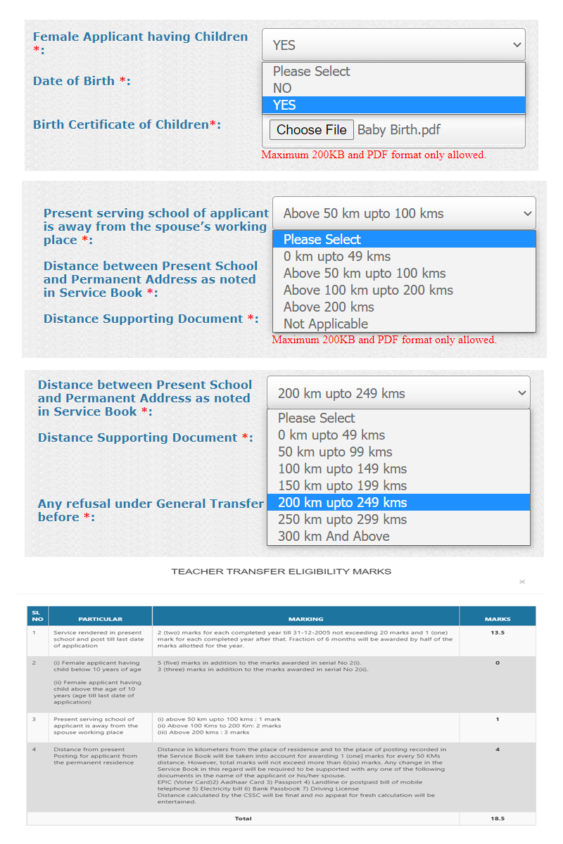 - Process of filling up online general transfer application form: