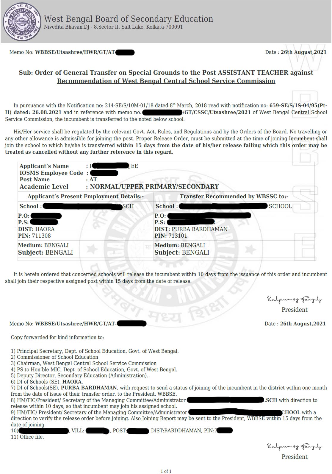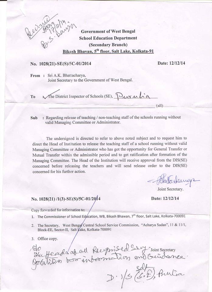- More than two lists has been published regarding Collection of Transfer Orders (Pre-Utsashree & Court Cases) from WBBSE Office. Sample
