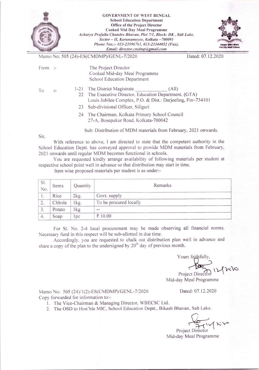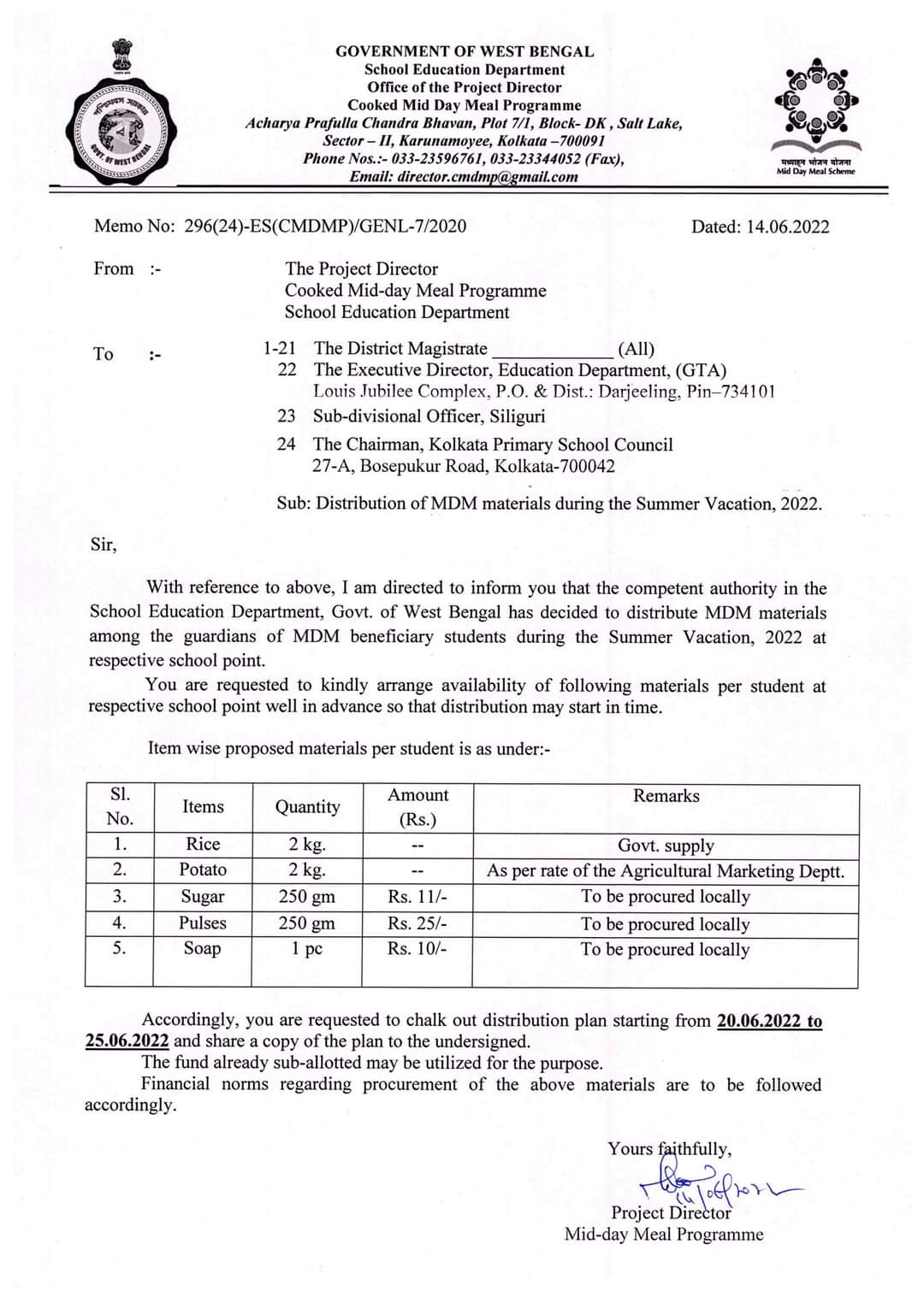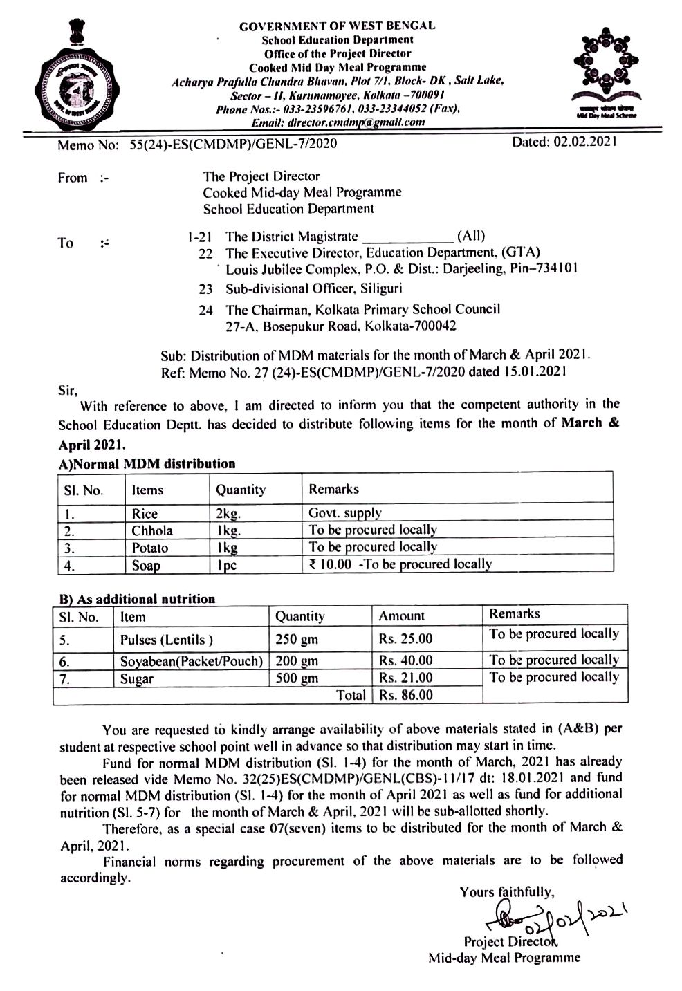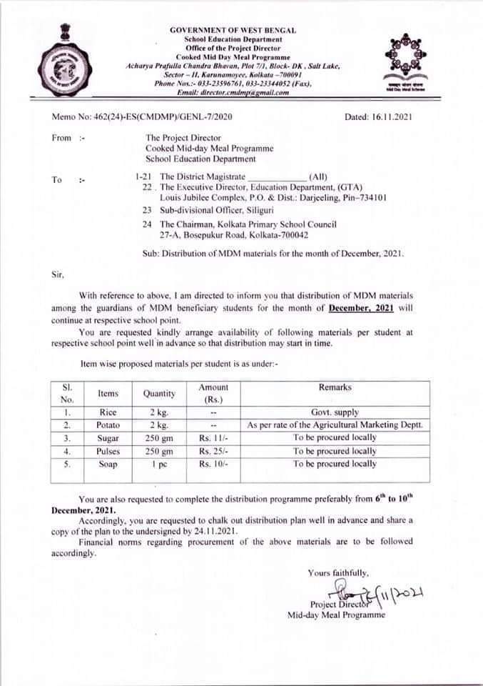 Distribution Orders: Jun 2022 | May 2022 | Paray MDM | Feb 2022 | Jan 2022 | Dec 2021 | Nov 2021 | Sep 2021 | Aug 2021 Final (Aug 2021 | ) | July 2021 | June 2021 | May 2021 (Same items to be distributed in May also) | Mar & Apr 2021 | Feb & Mar 2021 | Feb 2021 Onwords | Procurement of Chhola for the month of Dec, 2020 | Dec 2020 & Jan 2021 | Oct & Nov 2020 (Updated) | Sep to Nov 2020 (Addendum) | August 2020